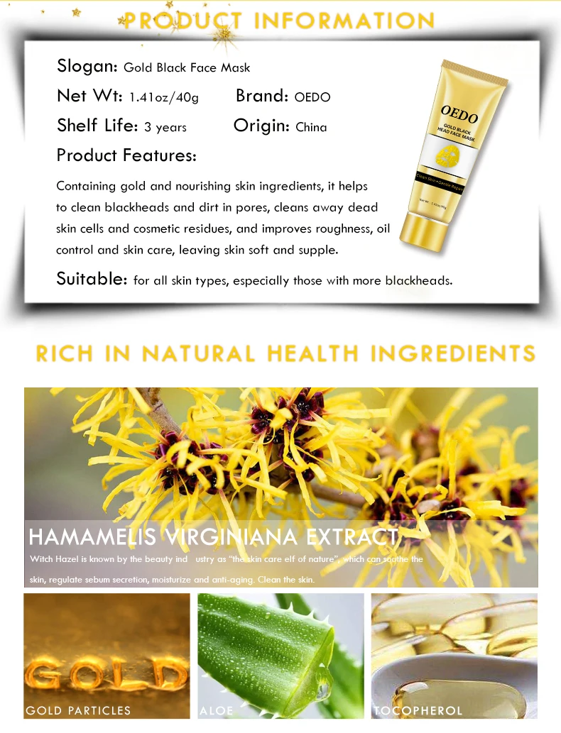 Содержит золотые ингредиенты, с различными питательными ингредиентами кожи, крем Мягкий и деликатный, помогает угрям и грязи очистить мышцы в порах, очищает отходы кератина и косметических остатков; В то же время улучшает шероховатость, очищает кожу, контролирует масло, Очищает кожу и делает ее мягкой и эластичной.