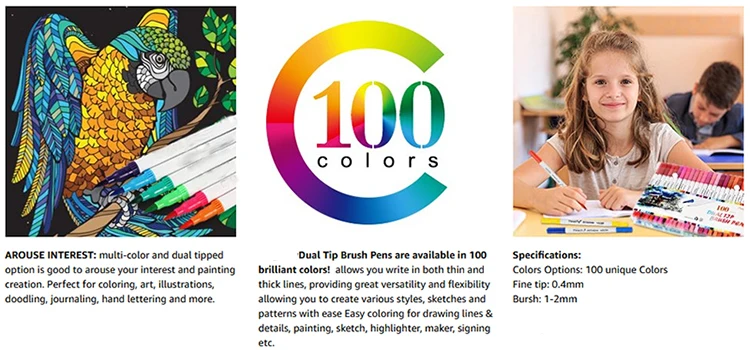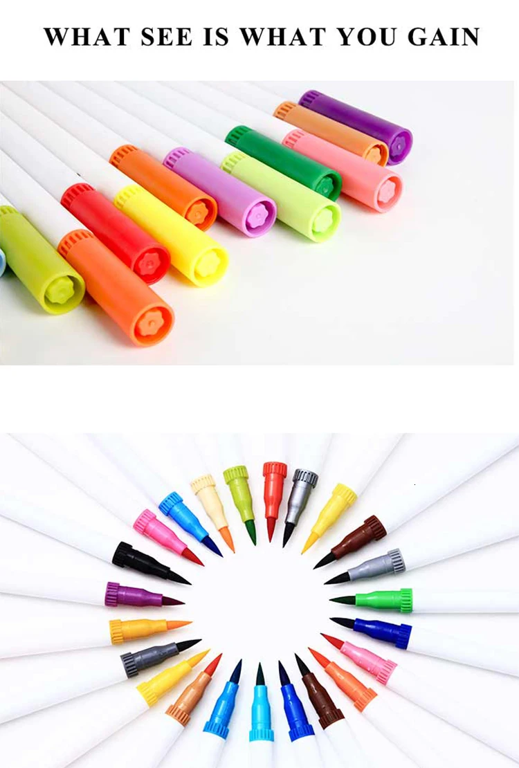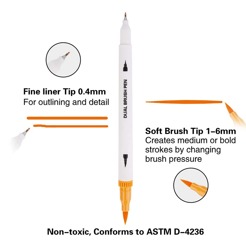 Тонкий наконечникНа другом конце каждой Двойной Ручки кисти является тонким наконечником для последовательных тонких линий. Сильный и не размытый, тонкий наконечник идеально подходит для добавления красочных деталей и ведения журнала Двойные ручки кисти предлагают гибкий наконечник кисти и тонкий наконечник в одном маркереСделка для изобразительного искусства, иллюстраций, рисования, журналистики, ручной надписи и многого другогоЧернила не содержат кислот, нетоксичны, смешиваются, не имеют запаха и не кровоточат.Чернила на водной основе высшего качества позволяют работать с другим водорастворимым материалом без кровотечения и избавляют вас от любого мазка и пятен, так как быстро высыхает.Превосходное качество