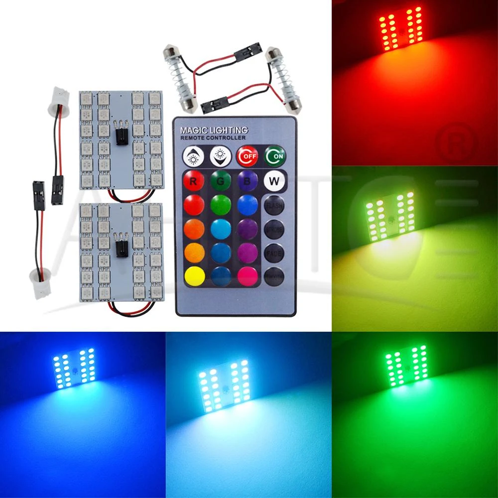 2 шт. T10 RGB 5050 24SMD Автомобильные светодиодные BA9S DC 12V пульт дистанционного управления RGB Панель салона авто лампы Атмосфера купол переходник для фестона лампа