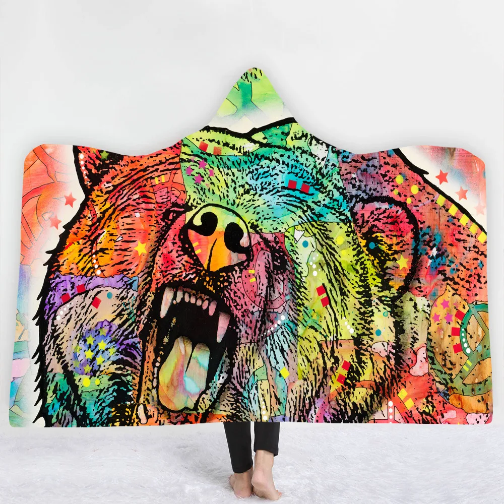 Модное зимнее теплое Флисовое одеяло с капюшоном для взрослых детей, покрывало с принтом животных, покрывало для кровати, дивана