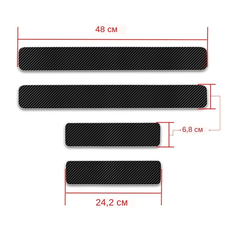 поглощает удары и предотвращает царапины. Закрывает существующие царапины, придает новый вид вашему автомобилю. Эффективно защищает дверные пороги, предотвращает трение и царапины, легко устанавливается. Изделие имеет клеевую основу. При наклеивании изделия смочите его заднюю поверхность водой, чтобы вы смогли свободно отрегулировать расположение наклейки.