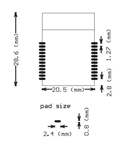 Размер: 20,5*28,5*2 ммРасположение штифта см. Изображение модуля. Булавки шаг 1,27 мм