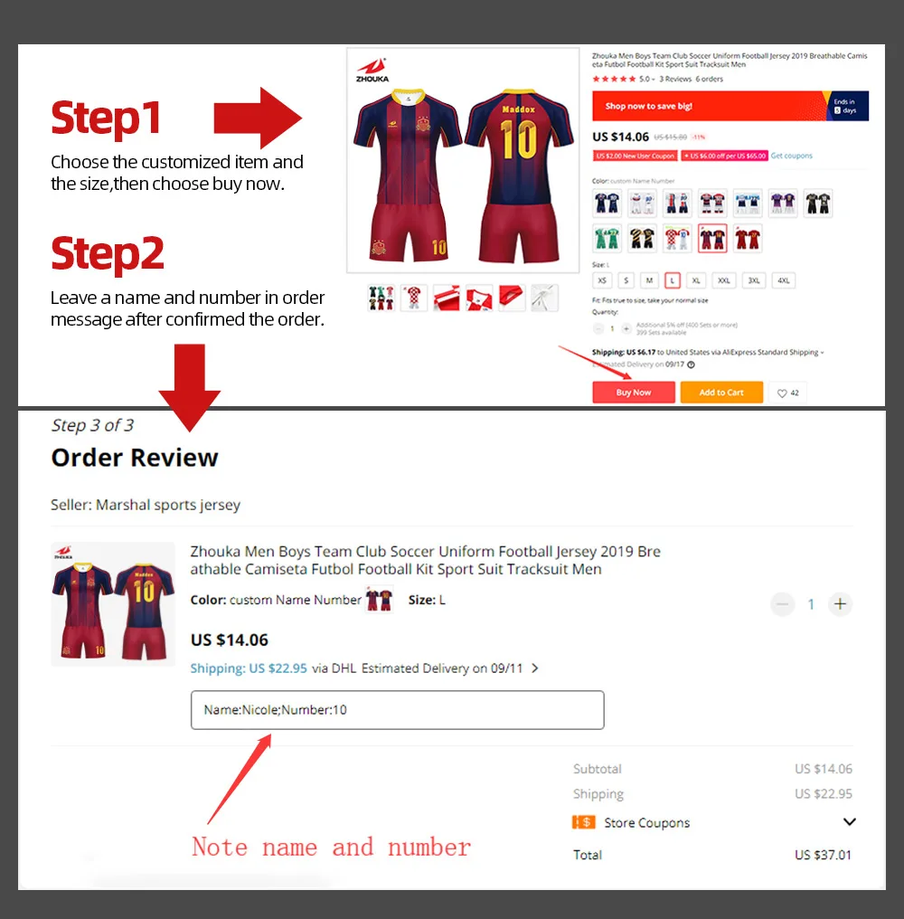Пожалуйста, укажите имя и номер вашего выбора в примечании с вашим заказом. Конкретная операция является следующей, если нет заметок или сообщения, мы отправим Джерси, как на картинке!