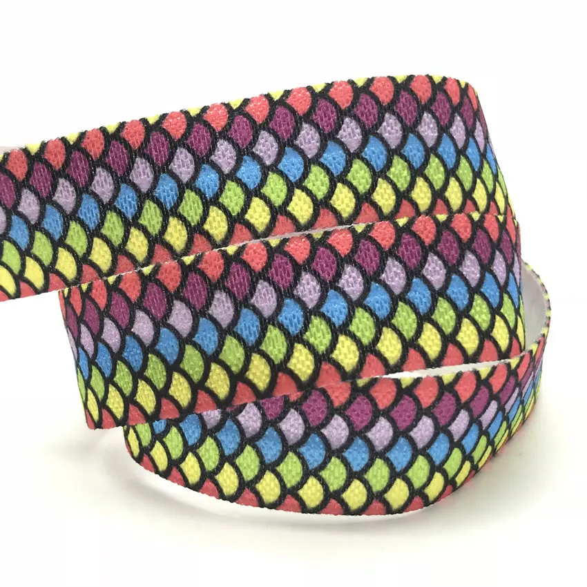 10 yards Mermaid fish scales Shark tooth Printed Fold Over Elastic Ribbon Crab Starfish Unicorn FOE 16mm for Hair Tie Bracelet