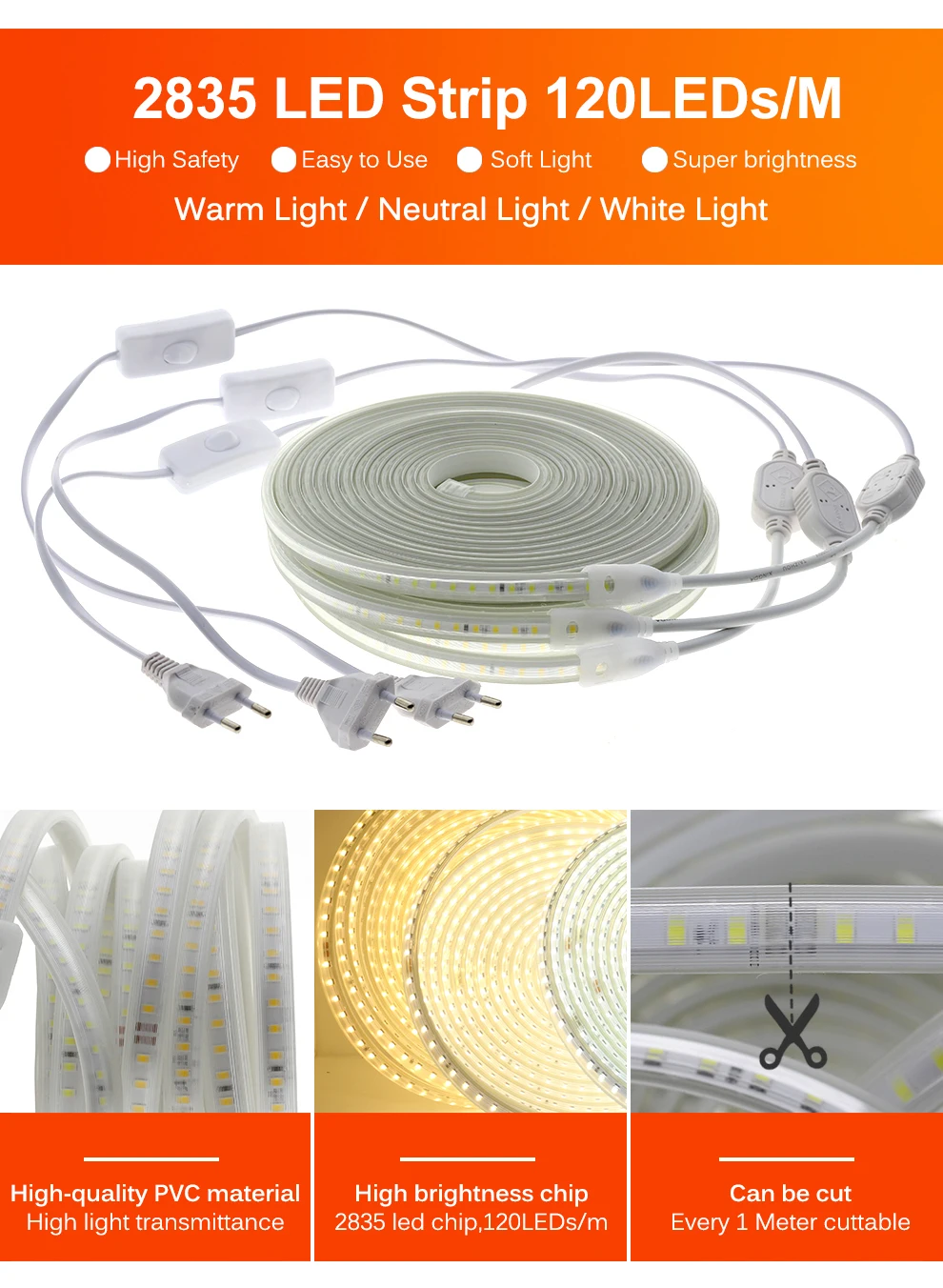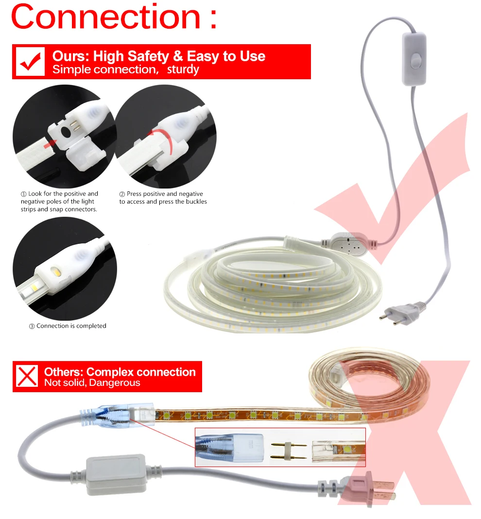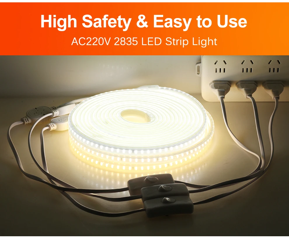 Светодиодная лента ac220в высокой безопасности, Диодная лента высокой яркости, водонепроницаемая гибкая светодиодная лента 2835 для внутреннего уличного украшения