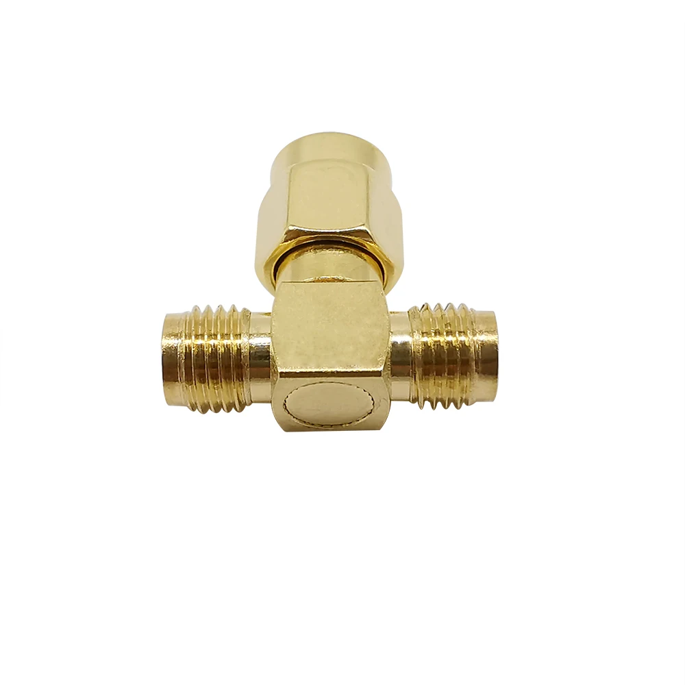 1 шт. T тип SMA штекер к 2 двойным (два) SMA Гнездовой разъем RF коаксиальный разъем 3 способ сплиттер антенна конвертер позолоченный латунь