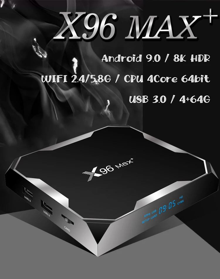-CPU: четырехъядерный процессор Amlogic S905X3 ARM Cortex A55; -GPU: ARM Mali-G31MP; -ОС: Android 9,0; -Память: DDR3 4 Гб, флэш-память 32/64 Гб/128 Гб; -Поддержка USB3.0; -Поддержка 10/100M Ethernet, 2,4 и 5G двухъядерный процессор Wi-Fi, BT4.0