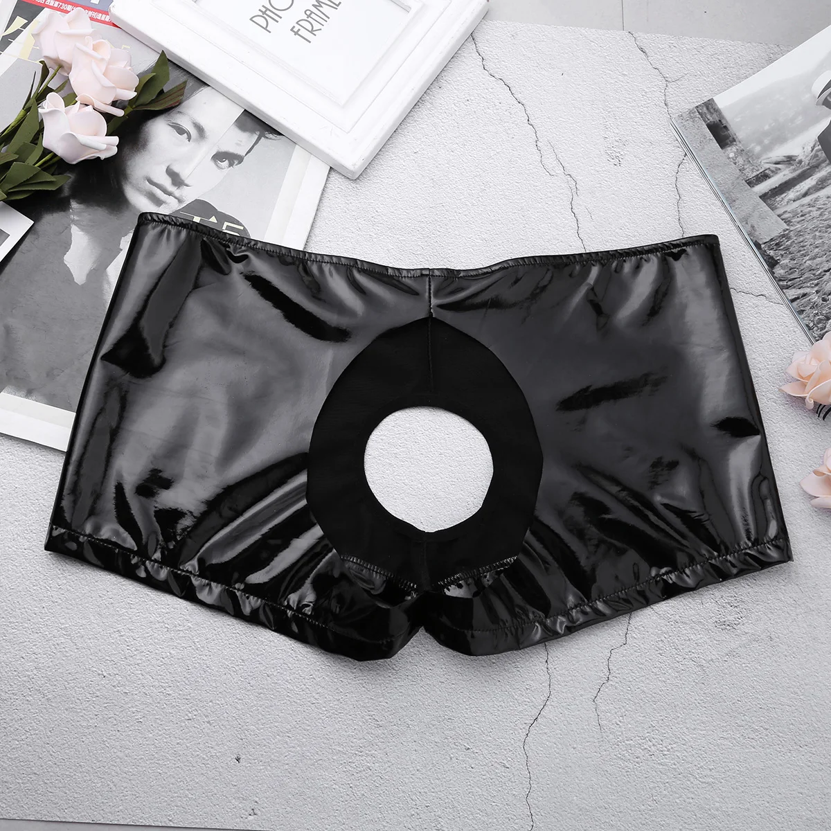 Мужские эластичные Короткие трусы, блестящий дизайн из лакированной кожи.