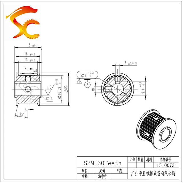 S2M-30Teeth зубчатый шкив диаметр 8 мм (Keyway 3 мм)