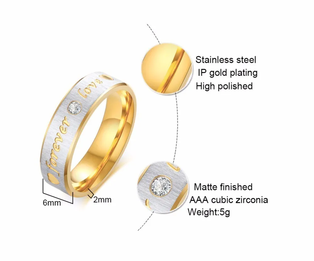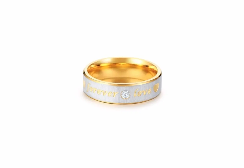 Для кольца, которое является равным частям стильным и романтичным, посмотрите не дальше, чем это мужское обручальное кольцо с двумя тонами из нержавеющей стали. Сделанный из нержавеющей стали 316L, атласная отделка центральной лентой акцентируется с одним сверкающим CZ и выгравирован словами «Forever Love». отполированные края золотого тона-это идеальное завершающее прикосновение к этой современной свадебной ленте или обручальному кольцу.