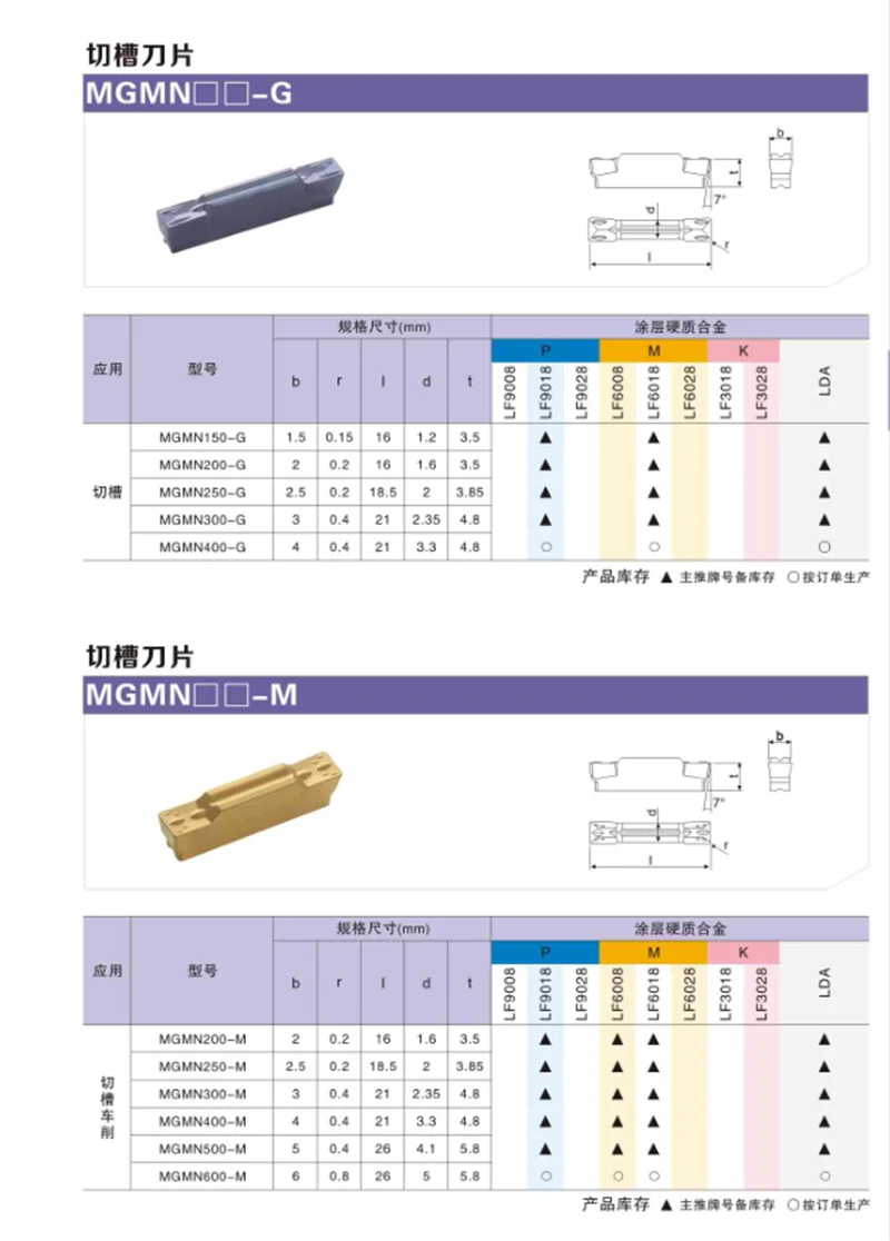 H01: подходит для обработки алюминия и меди цветных металлов, без покрытия, хорошо подходит для резки, не прилипает к ножу, и высокая отделка XM9030: подходит для обработки материалов на основе нержавеющей стали, а также стальных деталей, с высокой производительностью XC3020: Специальный класс для стальных деталей, с высокой износостойкостью и устойчивостью к коллапсу, высокая стоимость производительности