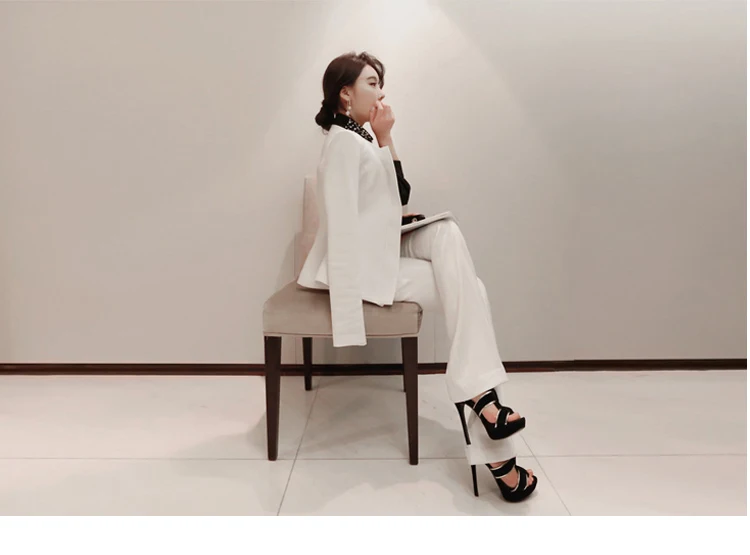 Женский комплект из 2 предметов, осень 2018, Женский деловой костюм, белые штаны, деловой костюм из органической кожи, брючный костюм с длинными рукавами, AF440