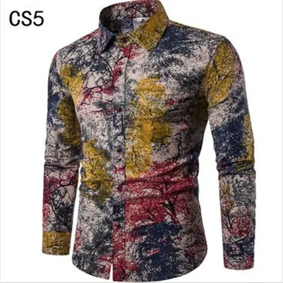 Мужские льняные рубашки с цветочным принтом, модные мужские кардиганы с длинными рукавами, большие размеры