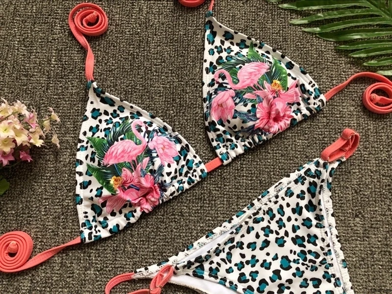 Розовые бикини купальник повязка с хомутом Для женщин купальная одежда Тонг 2020