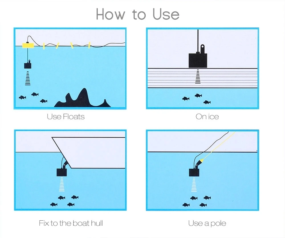 Этот рыболокатор является портативным, доступным и надежным для рыболовов, чтобы узнать местоположение и размеры рыб, глубину и нижний контур под водой. Это устройство оснащено системой частотного сонара для мощной производительности до 328 футов. Портативный дизайн позволяет обнаруживать школы рыб в любой конкретной области.