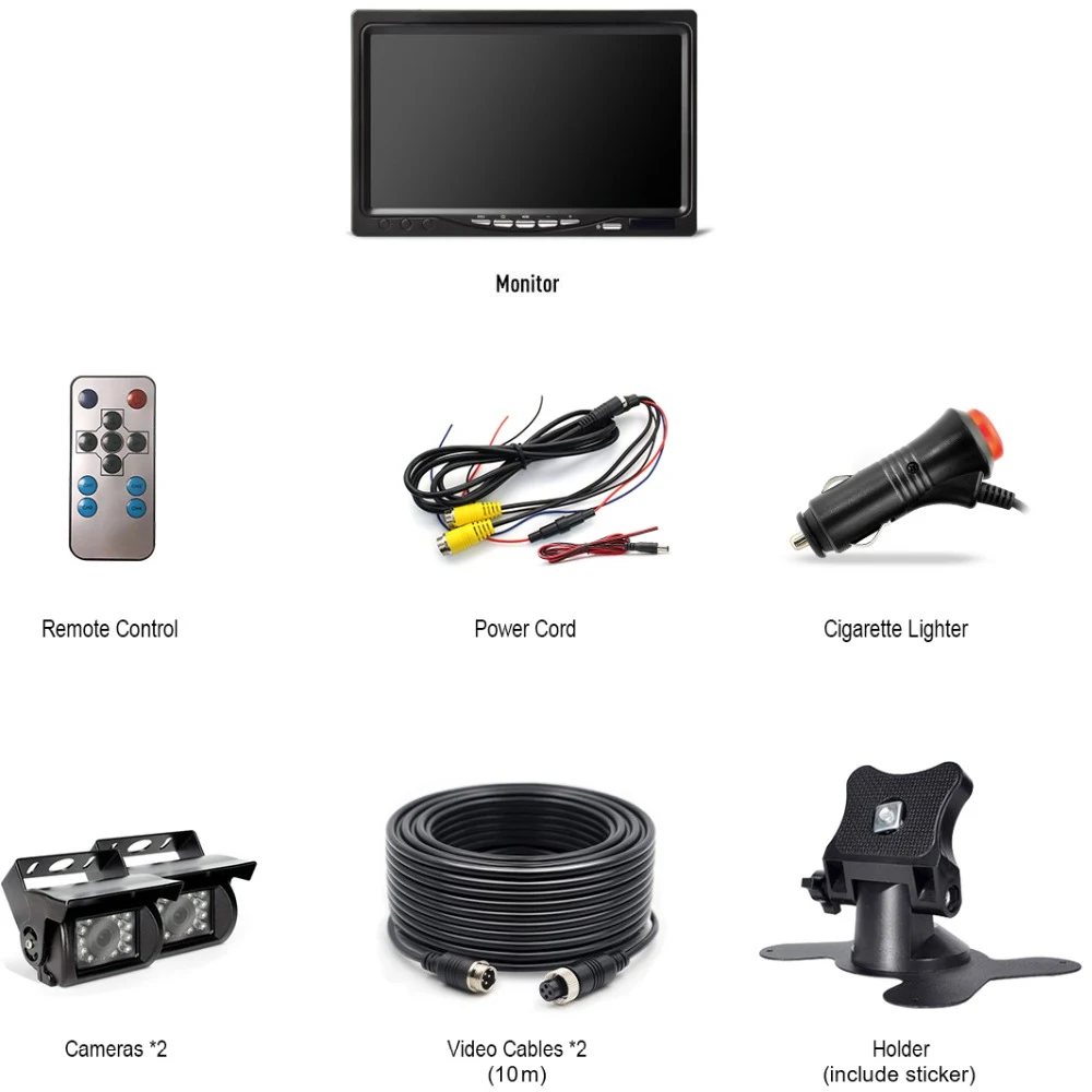 Если вам нужен монитор с двумя моделями камеры, пожалуйста, проверьте здесь: Parking-Assistance-7-TFT-LCD-Screen-Monitor-with-2PCS-IR-LED-Rear-View-Reversing-Cameras Вы также можете купить одну камеру здесь: Флуоресцентный Вы можете посмотреть ссылку ниже для более похожих продуктов: GreenYi-Truck-Bus-2-in-1-monitor-and-camera