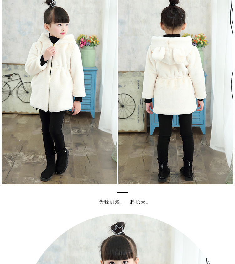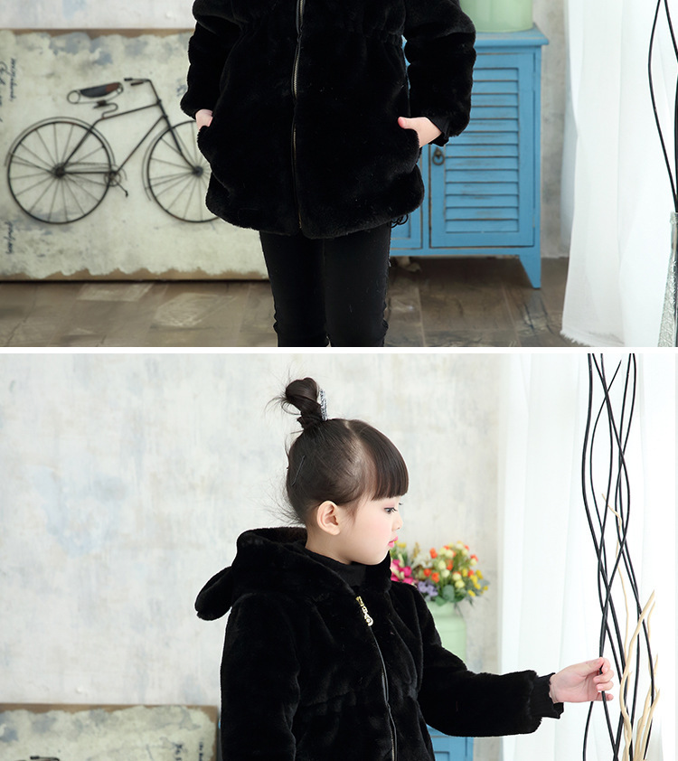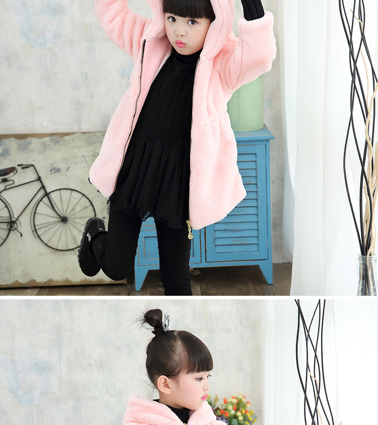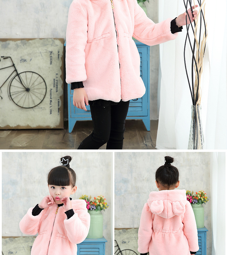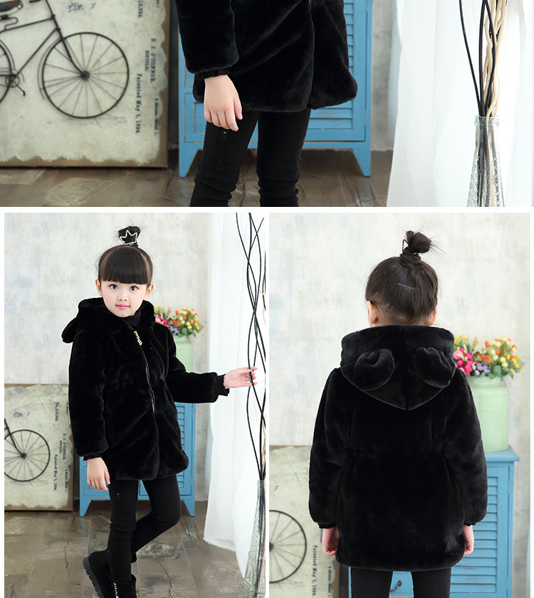 Новинка 2018 года, пальто из искусственного меха для девочек хлопковая Детская рубашка на молнии с капюшоном и ушками животных осенне-зимняя куртка пальто с длинными рукавами для малышей, QV133