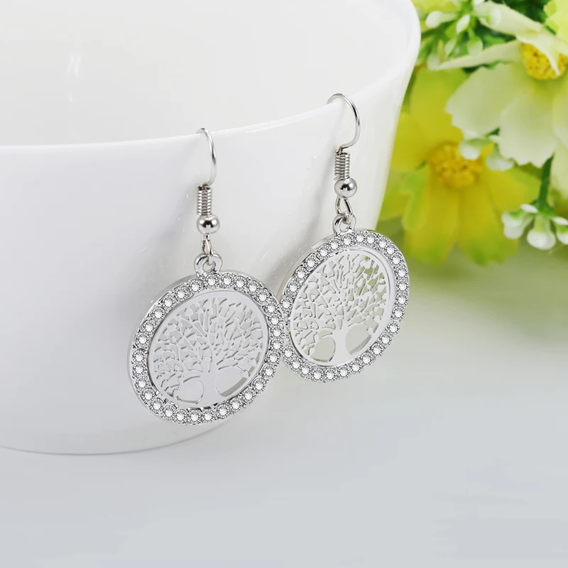 Комплект сережек для женщин с подвеской в виде золотого дерева жизни Хороший подарок для подруги и любимой и лучшего друга Цвет: Золотой/Серебряный/розовое золото Серьги Размеры: 2,3 см Длина цепочки ожерелья: 42 см + 5 удлинений