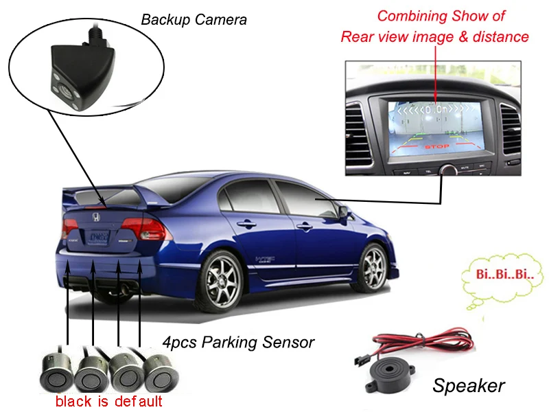 Розничная коробка для продажи в вашей стране. Пожалуйста, свяжитесь с нами. И цена будет Выше $3/шт 4. Вы можете выбрать 4 датчика/6 датчиков/8 датчиков 5,Есть 6 цветов, но по умолчанию отправляется только черный. Если вам нужны другие цветаПожалуйста, оставьте нам сообщение.1. Отображение Изображения заднего вида и расстояния на мониторе одновременно при подключении к экрану и камере заднего вида