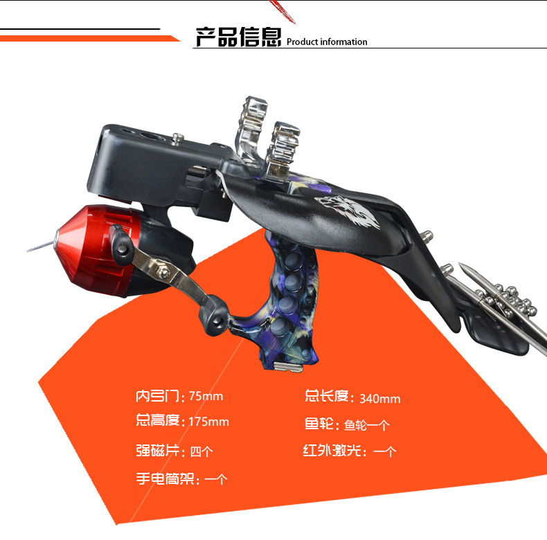 1 * Рогатка, 1 * Резиновая лента (Случайный цвет) *Рыболовная катушка 1 шт. * Сильный магнитный лист 4 шт. * инфракрасный лазер 1 шт. * фонарик 1 шт.