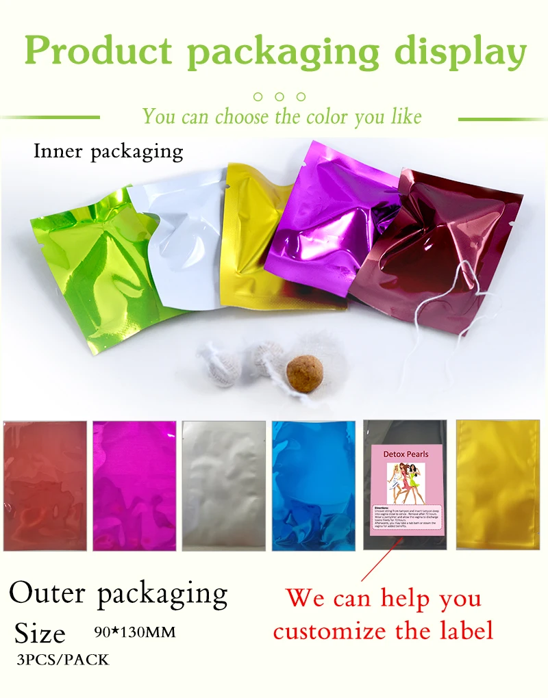В комплект входит:100 штук влагалищный детоксикационный жемчуг (Красивая Жизнь/Чистые Точечные Тампоны) Название продукта:Yoni Детокс жемчуг Состав:Китайские травы. Отсутствие побочного эффекта Индикация: Аномальные вагинальные выделения (лейкорея), зуд влагалища, нерегулярные менструации, менструальные боли Эндометрит, эрозия шейки матки и дисплазия, аннексическое воспаление, вагинит, тазовое воспаление, Дрожжевая инфекция и другие виды гинекологических заболеваний Кисты яичников, фиброид матки и другие болезни матки Меласма, темные пятна и отсутствие сексуальной жизни Использование: 1. Мойте руки перед использованием 2. Открытый мешочекИ вставьте жемчуг во влагалище (глубина 5-7 см) 3. Убедитесь, что веревка не обернута из каждой жемчужины, так как вам понадобится, чтобы удалить их из Влагалище после завершения детоксикации 4. Удалите тампоны через 3 дня и Очистите влагалище теплой водой 5. Пожалуйста, подождите 24 часа, прежде чем начать другой цикл детоксикации Предупреждение: Не используйте тампоны за 4 дня до начала менструации и подождите не менее 3 дней после последнего дня менструации перед использованием Детокс-жемчуга Не используйте детоксикационные жемчужины во время менструации, беременности или если вы девственница