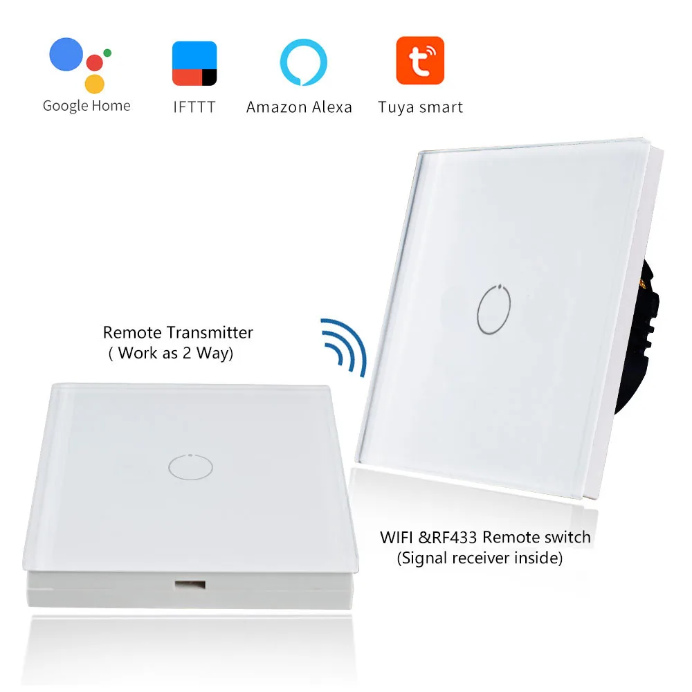 | Название продукта | Bingoelec 1 банда 1 способ дистанционного переключателя и беспроводной пульт дистанционного передатчика Роскошная стеклянная панель Переключатель набор RF 433,92 MHZ датчик переключатель |