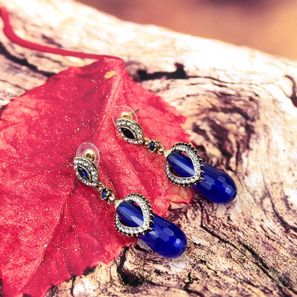 Женские серьги подвески MOONROCY золотистые с кристаллами овальные простые желтые