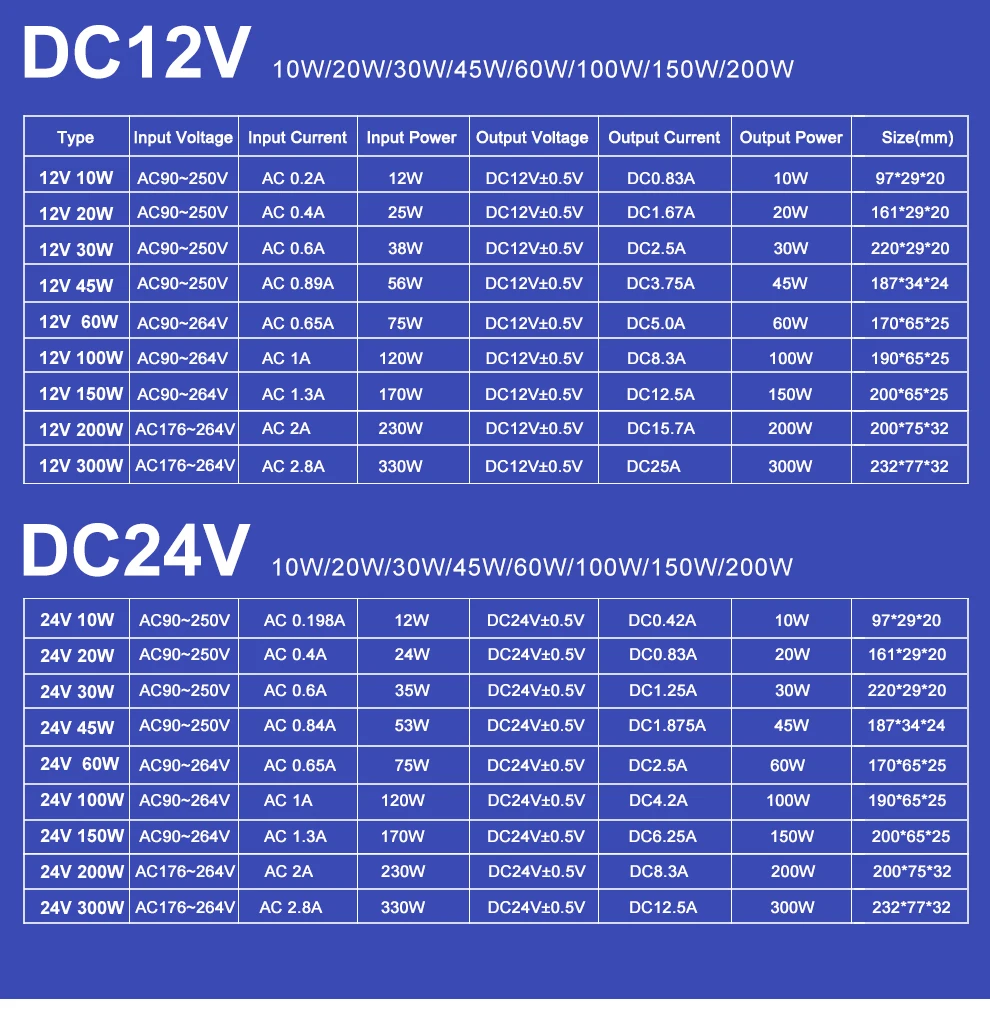 Водонепроницаемый светодиодный драйвер IP67 DC12V 24V Трансформаторы освещения для наружного освещения 12V Блок питания 10W 20W 30W 45W 60W 100W 200W 300W Функции:Водонепроницаемость: IP67, для использования вне помещенийВход: AC90 ~ 250 В 50/60 Гц (Входное напряжение источника питания 200 Вт и 300 Вт: 176-264 В переменного тока)Выход: 12 В / 24 В постоянного токаСтандарт безопасности: соответствует CE, FCC-Защита от короткого замыкания-Драйвер, источник питания, подходящий для оборудования наружного освещения, которому требуется DC12V / 24V,Подходит для других электронных продуктов, которые используют источник питания постоянного тока 12 В / 24 В. пожалуйстаNote:Входное напряжение источника питания 200 Вт и 300 Вт: 176-264 В переменного тока.Пожалуйста, внимательно проверьте фотографии наших продуктов перед покупкой!