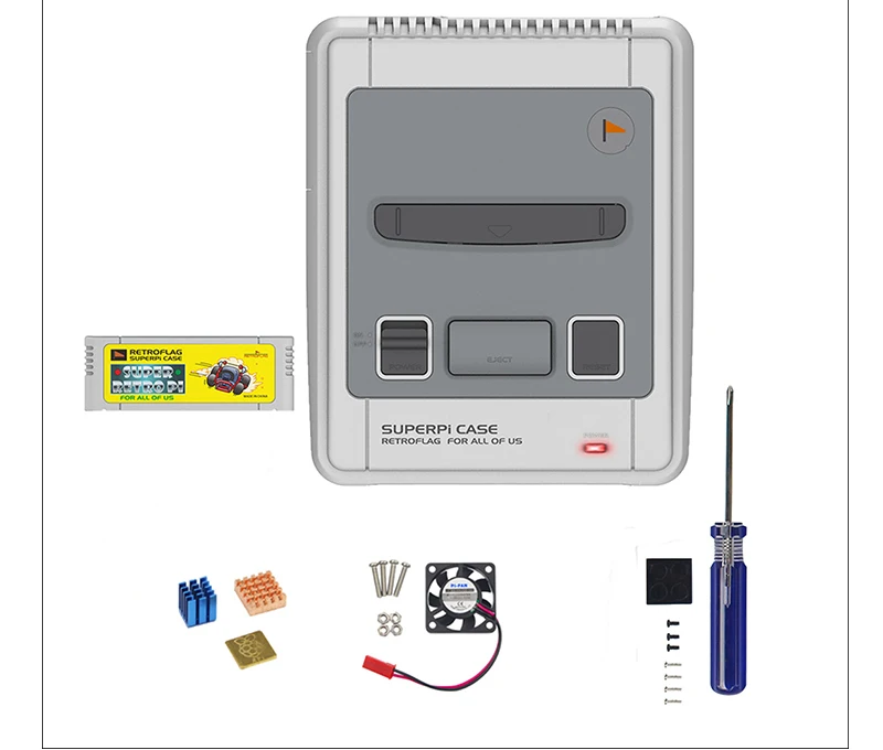 Retroflag Raspberry pi чехол superpi J чехол Новая версия (без материнской платы) Посылка включает в себя: 1 x CASE-J SUPERPi 1 х Отвертка Набор винтов-1 шт. Руководство по эксплуатации-1 шт. 1 х Вентилятор охлаждения 1x3 шт.