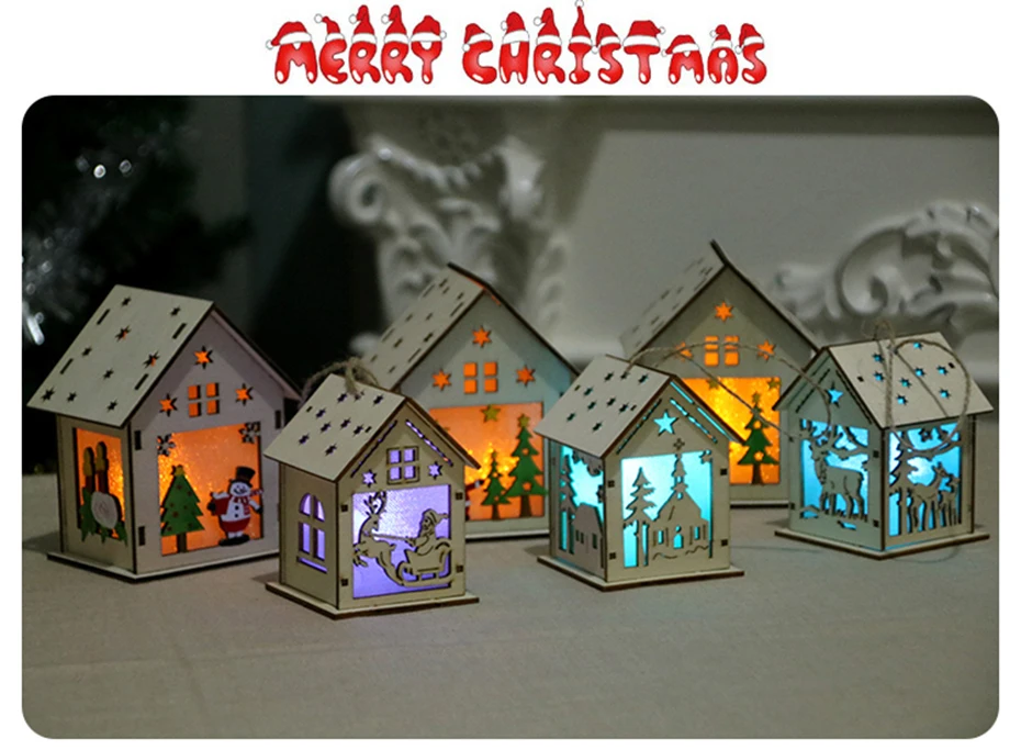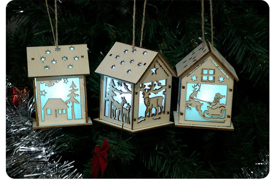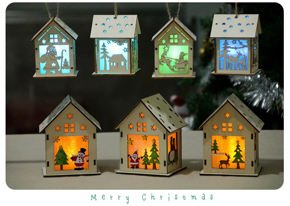 Июля песня Рождественская елка светодиодный свет деревянный дом украшения фестиваля для Висячие украшения для дома подарок 4 цвета Изменение освещения
