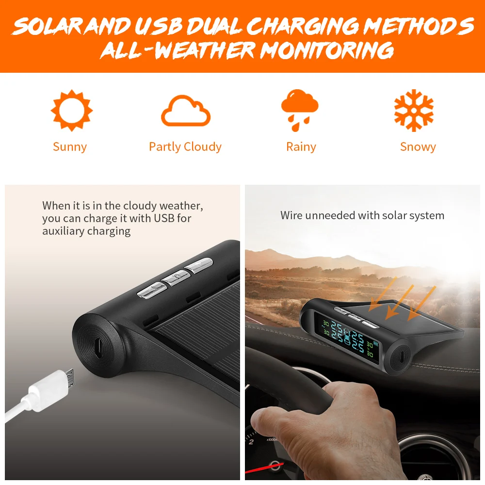 Детская одежда для детей в шинах с 4 разными способами -Мощные TPMS: Система контроля давления в шинах (TPMS) может контролировать давление в шинах/температурный статус в режиме реального времени, который будет передавать голосовую сигнализацию в реальном времени и мигающий предупреждающий Утюг, чтобы напомнить водителю о комфорте транспортного средства и безопасности вождения. -Широкое применение: Эта система широко подходит для транспортных средств с четырьмя шинами и максимальное давление шин ниже 8 бар, таких как коммерческий автомобиль, Джип, внедорожный автомобиль, автобус, и седан и т. Д. -Цифровой дисплей: ЖК-экран с яркой подсветкой и четкими данными позволяет легко и удобно узнать состояние вашего автомобиля. -Источник питания: Поддерживает солнечную зарядку и usb-зарядку, что означает, что наши TPMS могут быть использованы во всех погодных условиях, довольно удобно. -4 внешних/внутренних датчика: Обеспечивает 4 датчика, которые подходят для использования в дождливые дни. Кроме того, они обладают высокой чувствительностью и хорошей точностью для измерения давления и температуры.