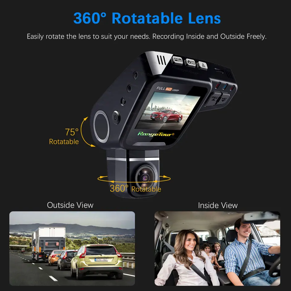 Фронтальная камера с поворотом на 360 градусов может быть легко отрегулирована спереди или сзади, более гибкая и веселая для вашего путешествия. Специально для семейного путешествия, водителя такси.