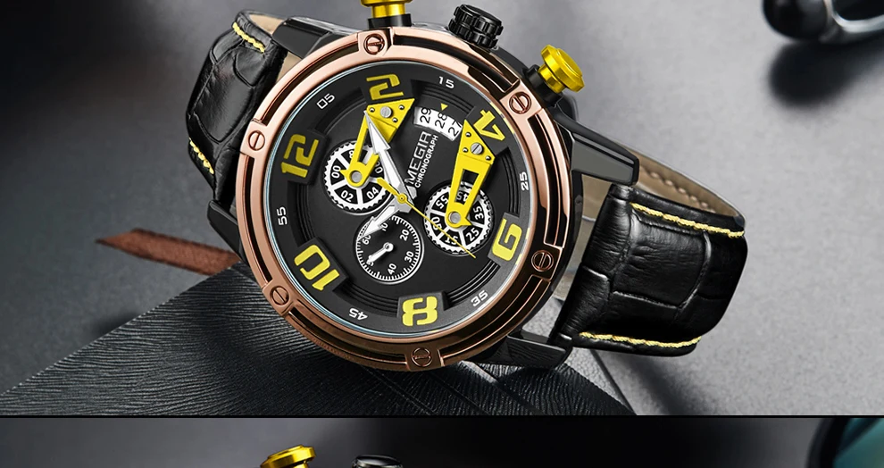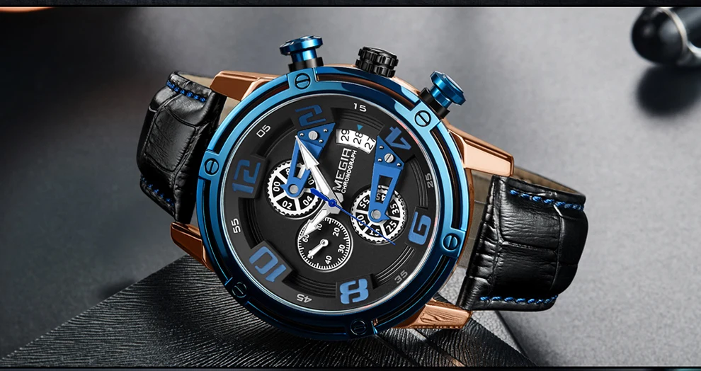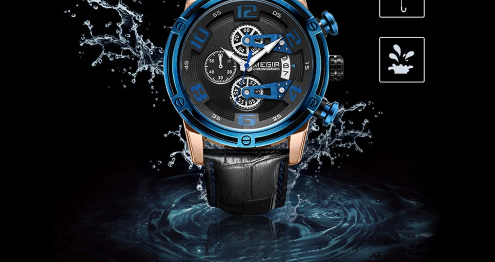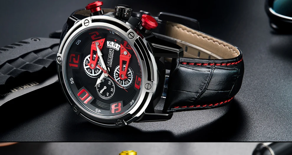 Особенности: -Оригинальные часы MEGIR Из заводского магазина наручных часов; -100% новый с биркой и качественным квартаном; -Водонепроницаемость 3 АТМ (вы можете использовать его во время дождя и мытья рук, не поддерживает горячую воду и плавание); -С хронографом (секундомером) и функцией подсветки, с датой; -MEGIR Креативный дизайн и высококачественные материалы. Характеристики: -Товар: Мужские квадратные кварцевые часы -Модель: MEGIR 2078M -Тип часов: кварцевые часы/мужские часы/военные часы -Функция: хронограф, секундомер, светящийся, календарь (дата), водонепроницаемый -Материал корпуса: сплав -Материал ремешка: натуральная кожа Параметры: -Чехол Диаметр: около 47 мм -Чехол Толщина: около 15 мм -Длина ремешка (максимальная носимая длина): около 230 мм -Ширина ремешка: около 22 мм Посылка включает в себя: -Часы Megir-1 шт. -1 Руководство пользователя с гарантийным талоном -1 x салфетка для чистки часов