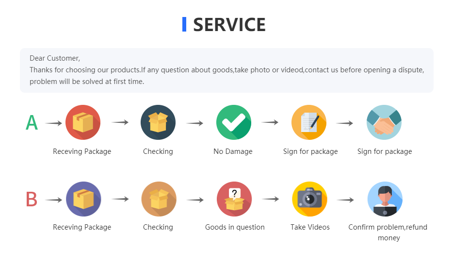 3. Мы не несем ответственности за любые местные пошлины или налоги. Пожалуйста, внимательно проверьте свой адрес при оформлении заказа. Обычно Доставка авиапочтой занимает 15-45 рабочих дней, а экспресс-доставка занимает 8-12 рабочих дней.