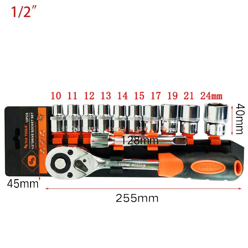 1/2":10 мм, 11 мм, 12 мм, 13 мм, 14 мм, 15 мм, 17 мм, 19 мм, 22 мм, 24 мм