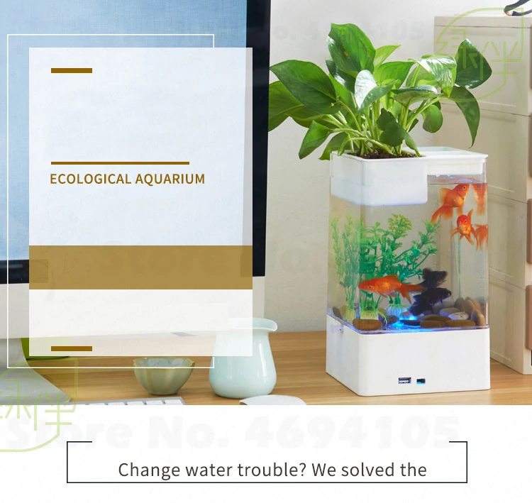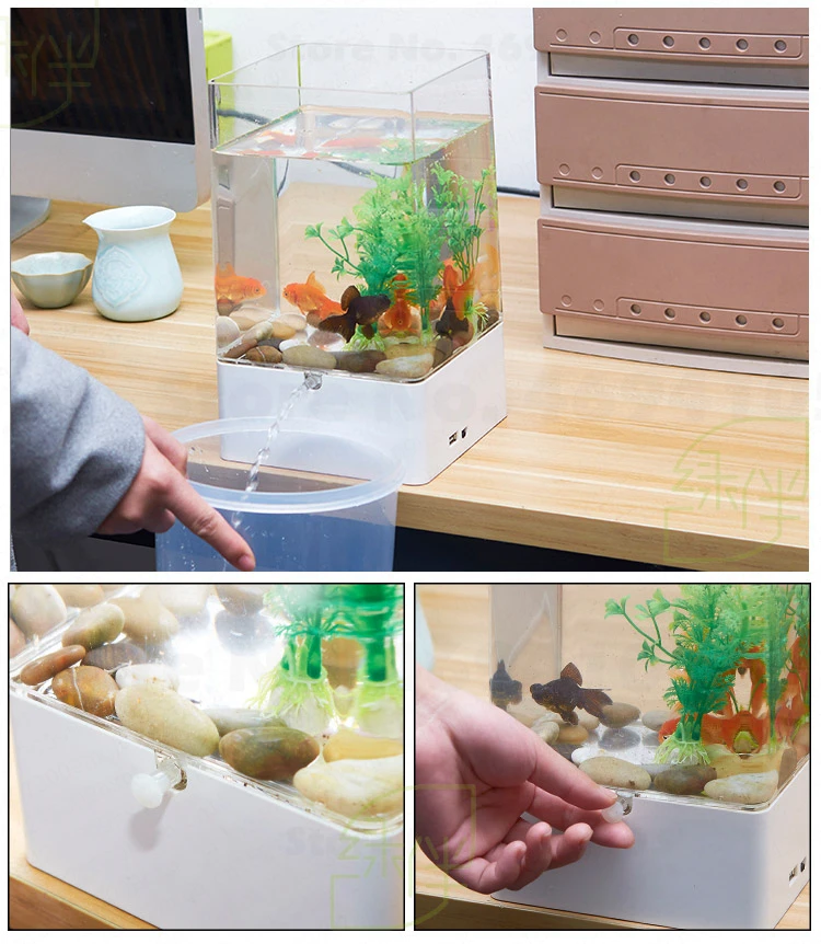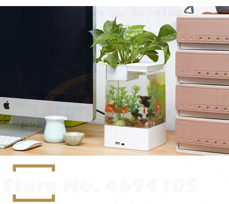 M124Novice пластиковый мини настольный аквариум для рыб экологический аквариум с нижним хранилищем легко менять воду с автоматической фильтрацией воды