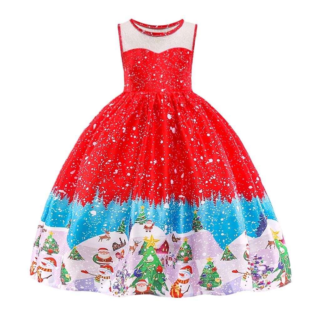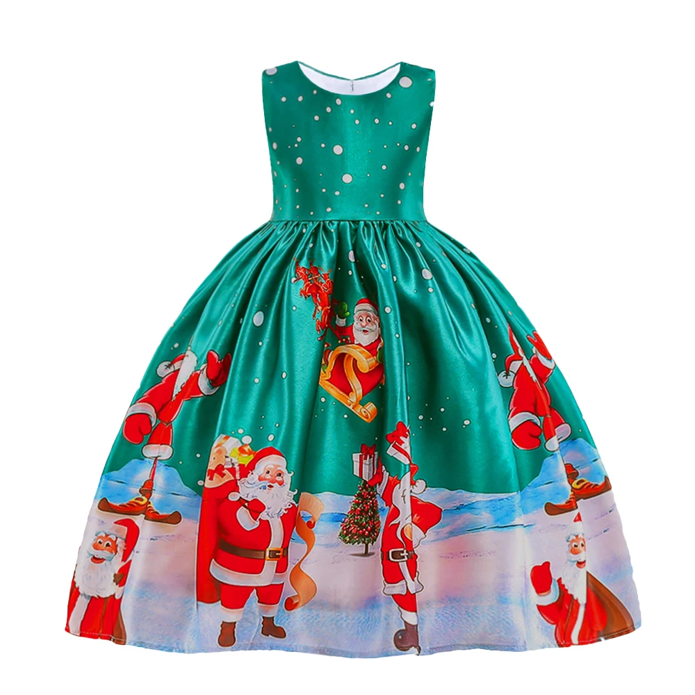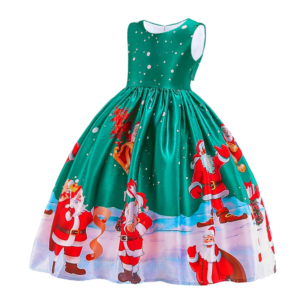 BAOHULU/новогодний праздничный костюм зеленое рождественское платье без рукавов для подростков Детские платья с Санта Клаусом для девочек, одежда для От 2 до 11 лет