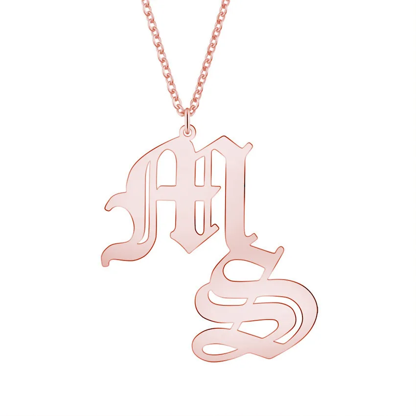 Многослойное ожерелье женское заказное имя золото Старый Английский сплайсинга кулон персонализированные Винтажные Ювелирные изделия из нержавеющей стали романтическая пара подарок
