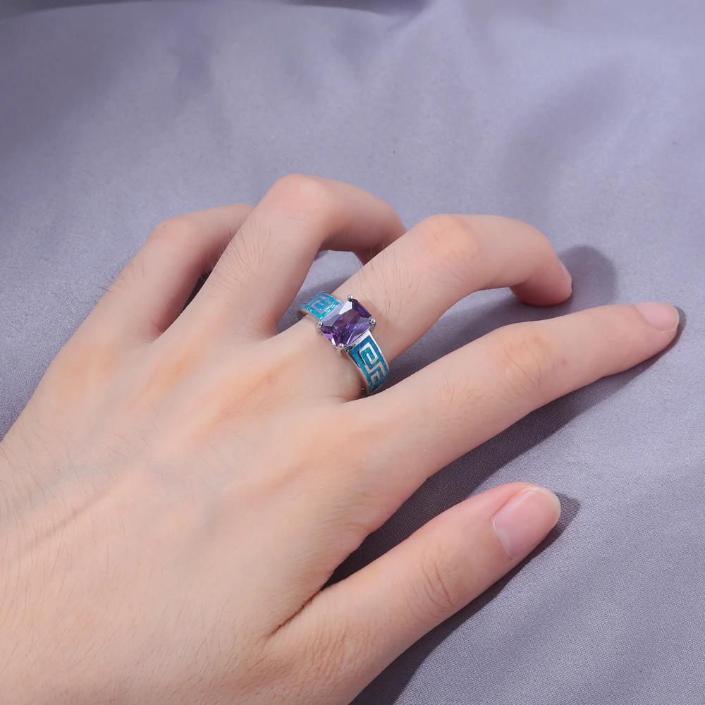 Кольцо CiNily на палец с голубым огненным опалом Большие серебряные квадратные