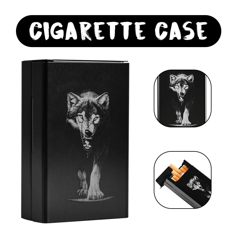 Характеристики: Товар: чехол для сигареты с изображением Черного Волка Материал: металл Цвет: черный Посылка включает: 1 * чехол для сигареты