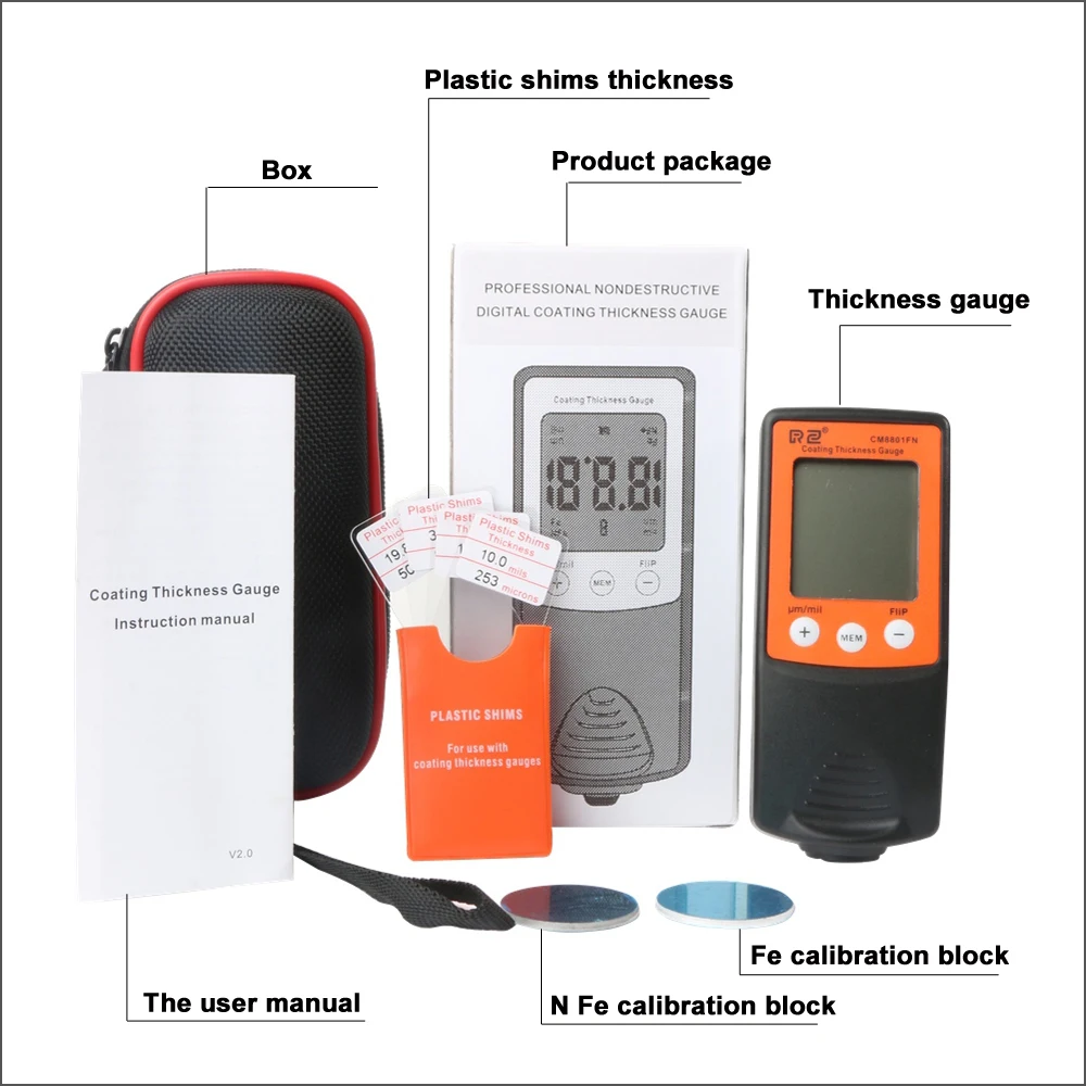 1 шт. толщиномер покрытия1 шт. ящик для инструментов1 шт. руководство на английском языке