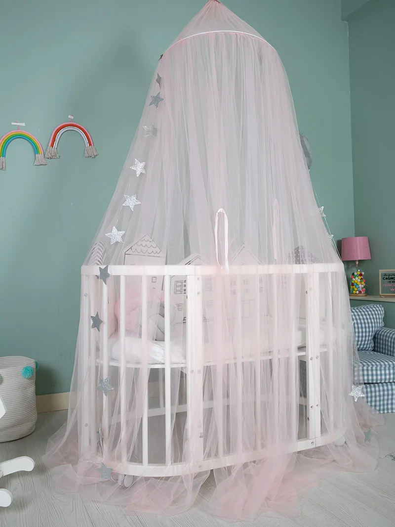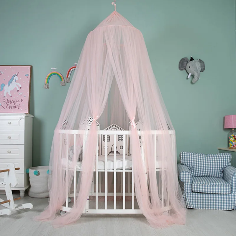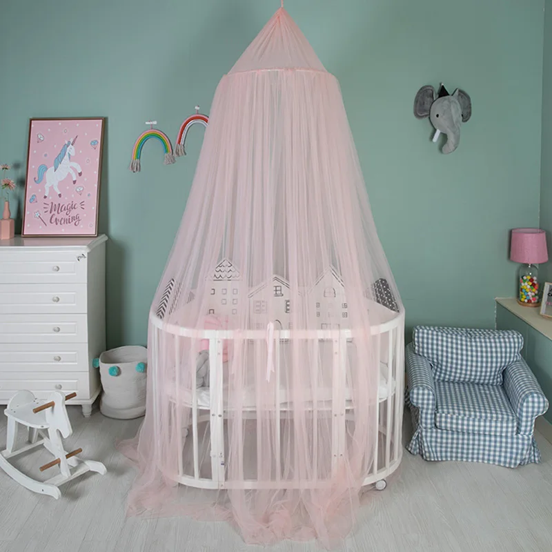 Детская кроватка в сетку принцесса купол кровать навес детское постельное белье круглый кружево москитная сетка для сна 7 цветов украшение комнаты