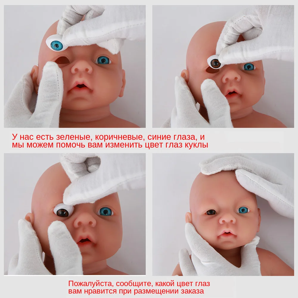 Ответ: Да, цвет глаз этой силиконовой куклы-младенца можно изменить. (У нас есть коричневые, зеленые, голубые цвета глаз)