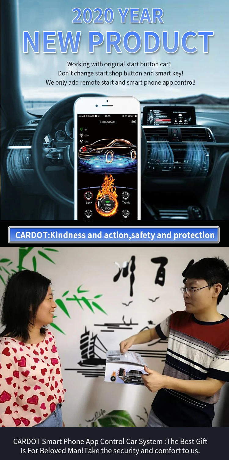 Этот продукт специально разработан для пользователей, у которых есть кнопка запуска на оригинальном автомобиле. Вам не нужно менять кнопку запуска и кнопку на оригинальном автомобиле. Наш продукт повышает функцию управления автомобилем, используя ваш мобильный телефон. 2g gps, настроенный ниже,-версия без функции sos.