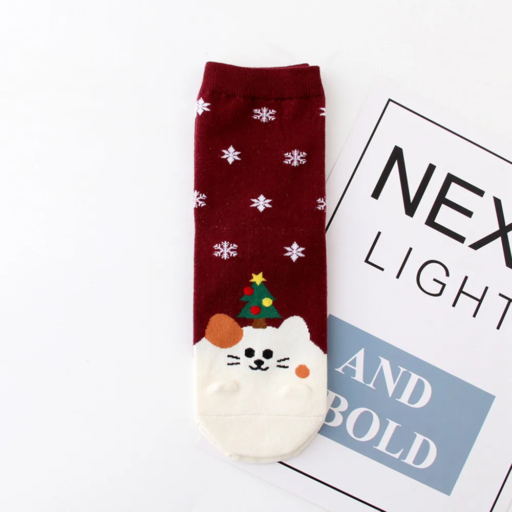 Рождественские короткие носки для женщин и девочек; сезон осень-зима; повседневные милые носки с мультяшным принтом; модные мягкие хлопчатобумажные забавные носки; kawaii