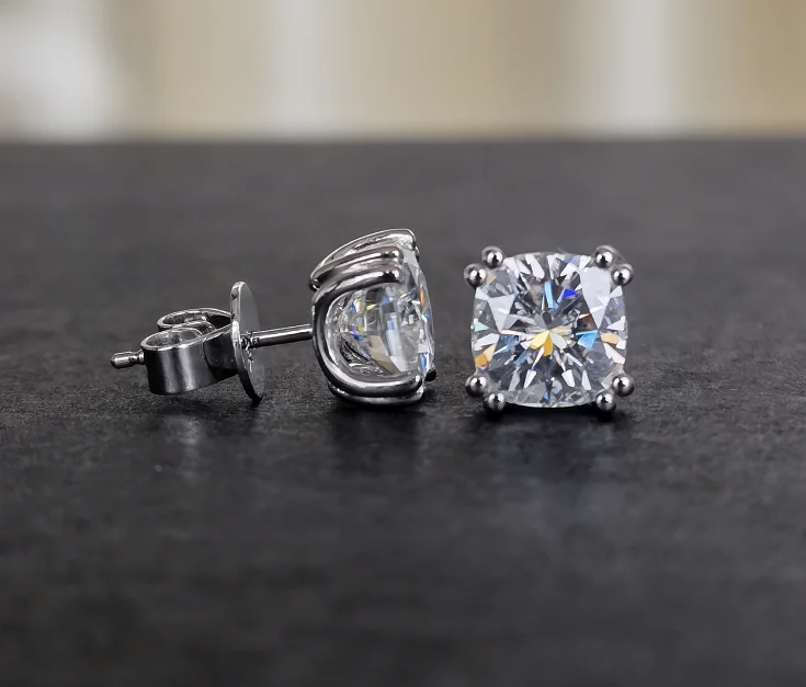 1. Серьги выполнена с 2ct (7,5*7,5 мм) /per цвет GH Подушка cut Муассанит,