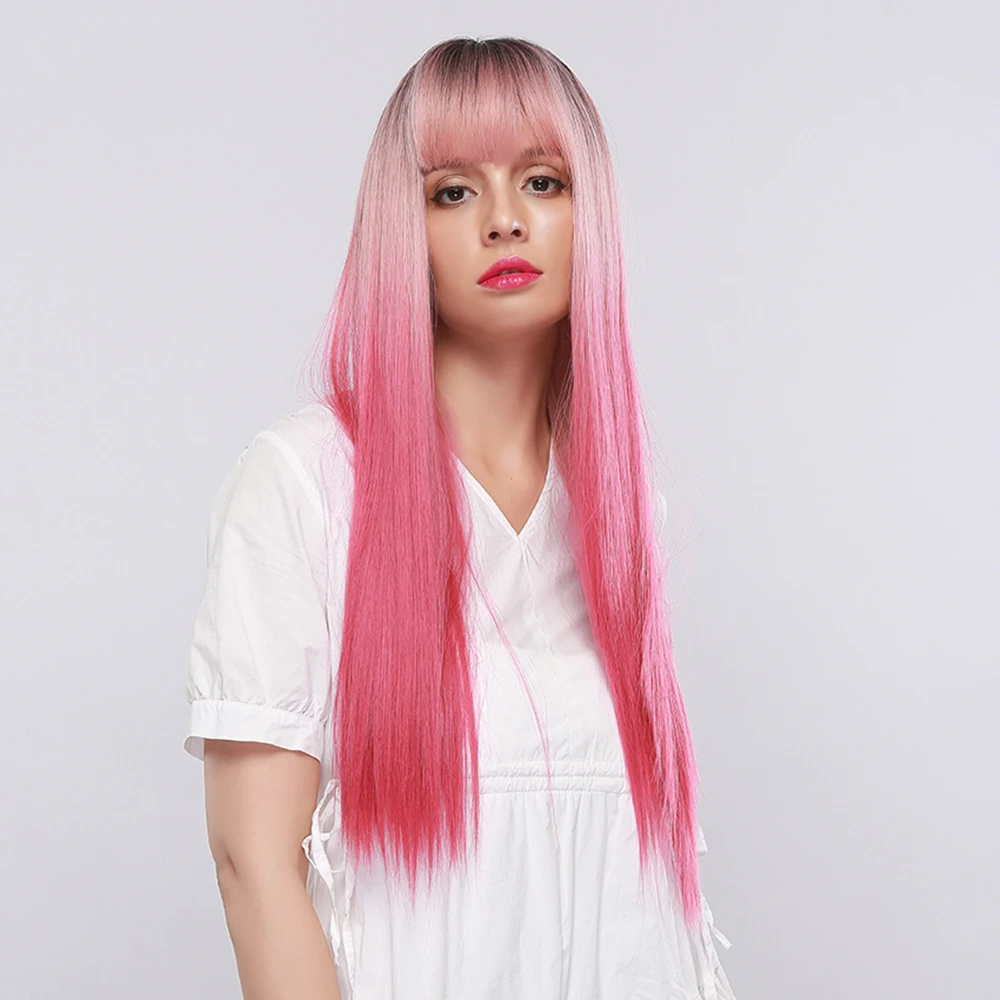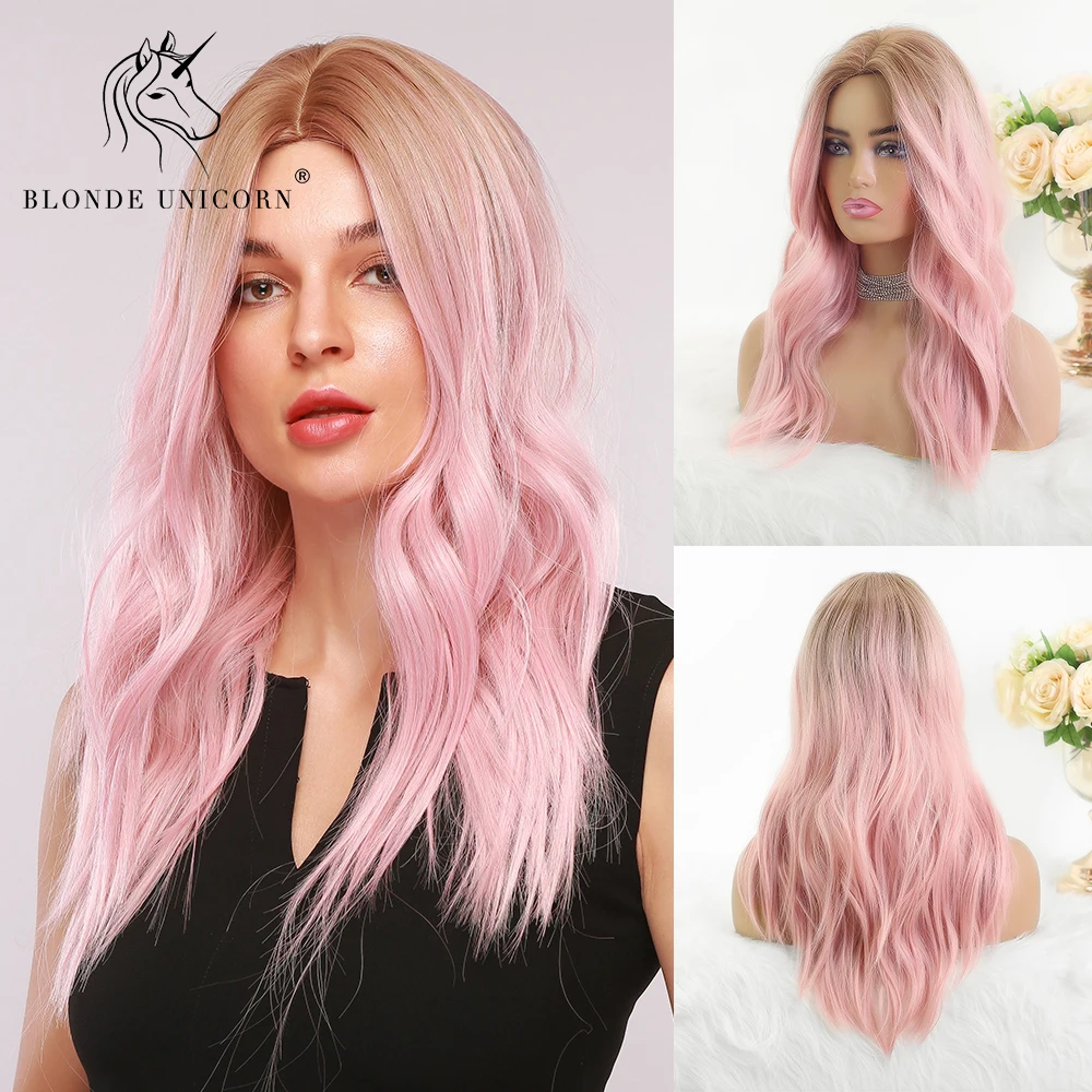 Bobo синтетический парик с длинным естественным волнистым единорогом, черный корень, Омбре, розовые парики для черно-белых женщин, милые волосы