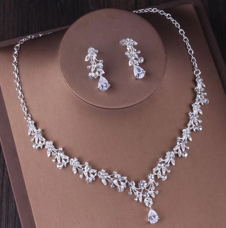 Роскошный серебряный цвет, хрустальные цветы, Свадебный комплект ювелирных изделий, стразы, тиара, корона, колье, серьги, Свадебный комплект ювелирных изделий из Дубая