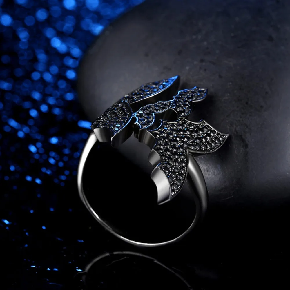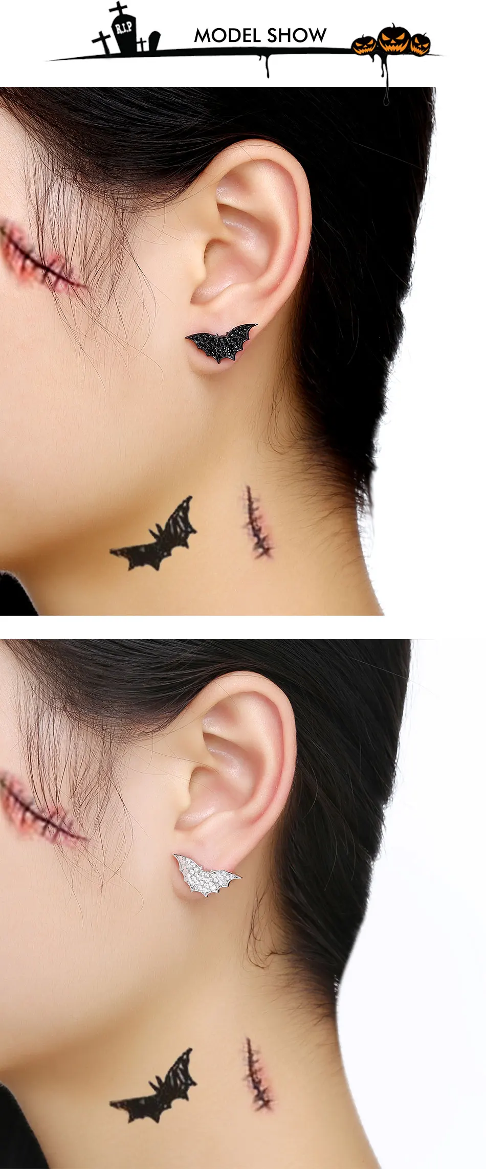 Женские серьги-гвоздики KISS MANDY, с летучей мышью, черные, прозрачные, ослепительные, AAA CZ, оригинальный дизайн, вечерние ювелирные изделия на Хэллоуин, LE200