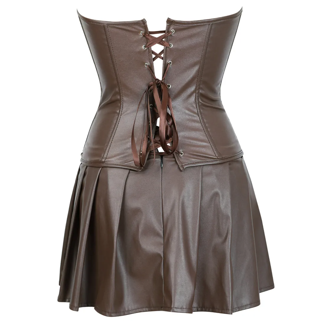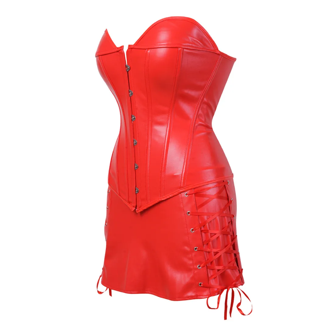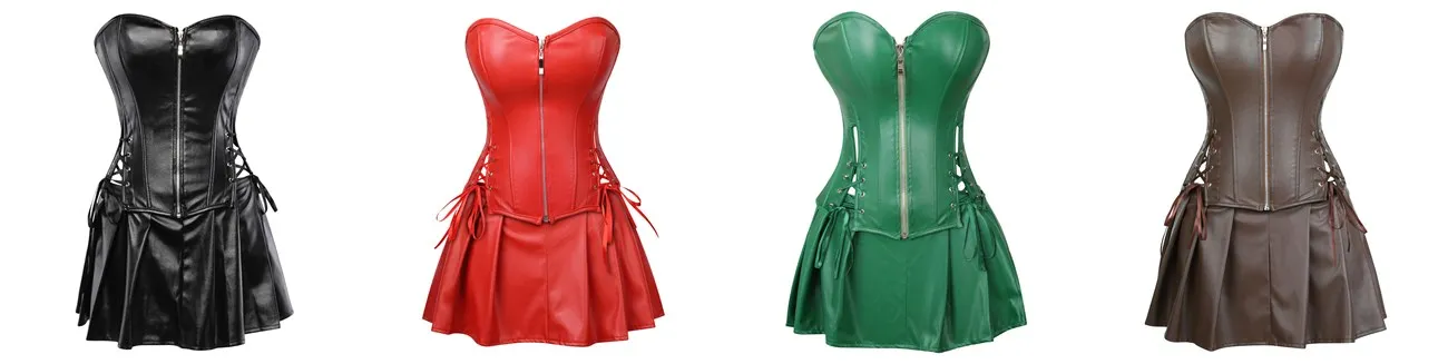 Наименование товара: комплект с платьем-корсетом из искусственной кожи Цвет: зеленый, черный, красный, коричневый Материал: искусственная кожа Идеальное платье-корсет для бурлески, Рождества, платье для ночного клуба, маскарада, костюма